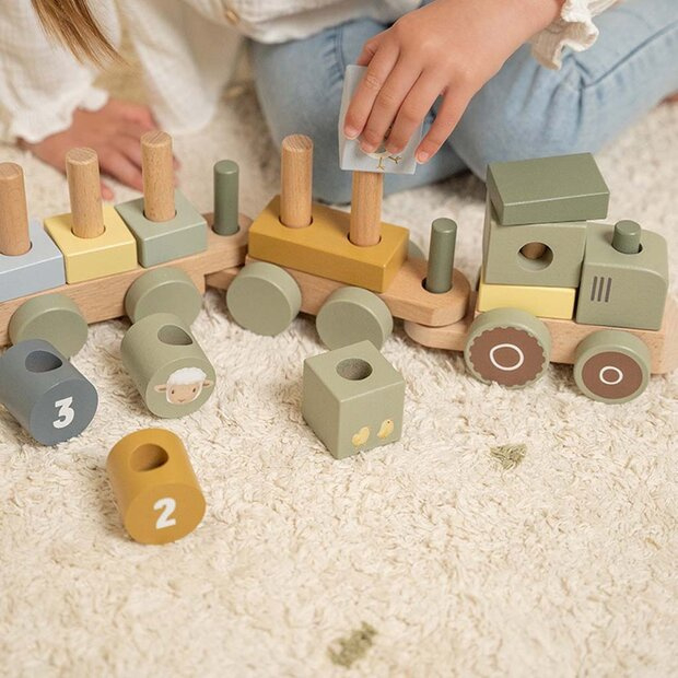 OverzichtDe mooie houten trein van Little Dutch is prachtig geïllustreerd. Keuze uit, met de bloemen en insecten van de Wild Flower collectie of de stoere tractor little farm.