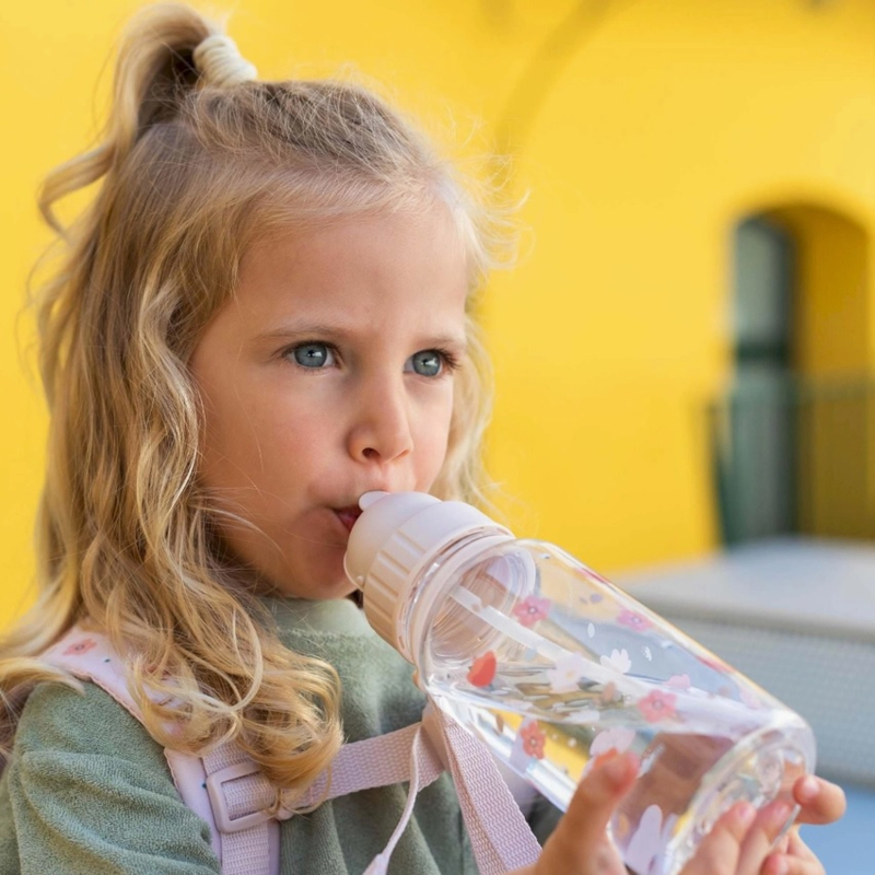OverzichtTritan plastic fles, heeft een opvouwbaar siliconen rietje dat automatisch naar buiten komt als het deksel wordt geopend en ideaal is om mee naar school te nemen.