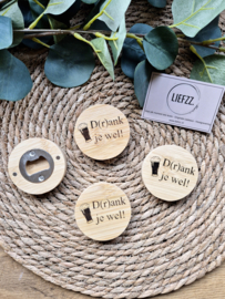 OverzichtVoeg een vleugje humor en functionaliteit toe aan je borrelavond met deze unieke bieropener met magneet en de tekst "D(r)ankje Wel". Perfect als cadeau voor bierliefhebbers of als een leuke toevoeging aan je eigen keuken.