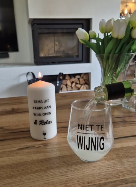 Breng een glimlach in je interieur met onze originele grote witte kaars met de tekst 'Beha uit. Kaars aan. Wijn open & Relax'. Deze humoristische kaars voegt niet alleen een vleugje gezelligheid toe aan je huis, maar herinnert je…
