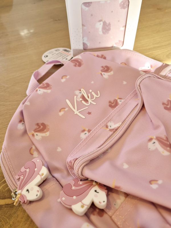 Deze rugtas is gratis te personaliseren met de naam van jouw kleintje.